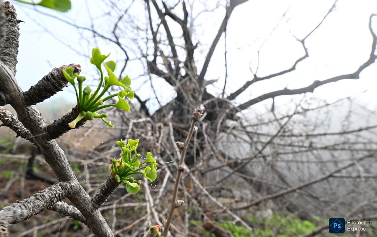 7일 하동군 옥종면 두양리에 있는 수령 900년 은행나무에 새순이 돋았다. 이 나무는 지난 3월 산청 ·하동 산불 당시 화마를 피하지 못한 바 있다.