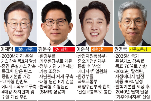 ◇권영국 ‘기후에너지 부처 신설’ = 권영국 민주노동당 후보는 기후 위기 문제에서 가장 적극적이고 구체적인 공약을 내놓고 있다.