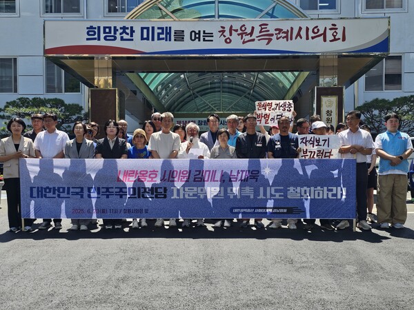 남재욱 시의원을 두고서는 “불법 계엄 이후인 지난해 12월 10일 남 시의원은 창원시의회 본회의장에서 공공연하게 불법 계엄 정당성을 주장했다”며 “국민의힘 소속 경남 지방의원 참여 단체카톡방에 지속해서 내란 옹호 글을 올리기도 했었다”고 말했다.