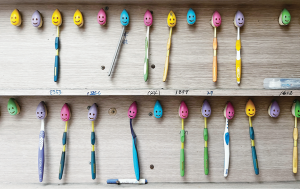 종종 점심을 먹으러 들르는 기사식당 화장실에 갔다가세면대 위에 설치된 칫솔 보관함을 보았다. 식당 주인은 여기에서 밥을 먹는 택시 기사들을 위해 마련했다고 한다. 칫솔 케이스의 웃는 얼굴을 보니 덩달아 미소가 그려진다.