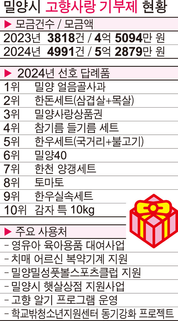 고향사랑기부제도 밀양시의 인구 위기 돌파 정책의 한 축을 맡고 있다.