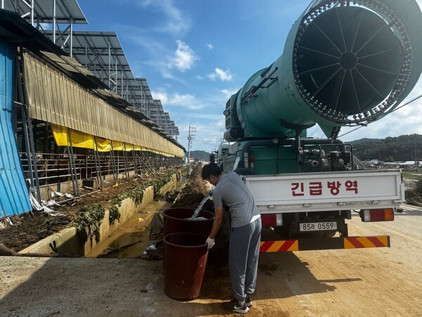 또 경남도는 침수 피해를 본 축산농가를 대상으로 가축전염병 발생을 차단하고자 긴급 방역을 추진하고 있다. 가축 건강상태 점검 등 예찰을 강화하고 시군 공동방제단 방역차량 86대를 동원해 소독과 드론 방제를 이어가고 있다.