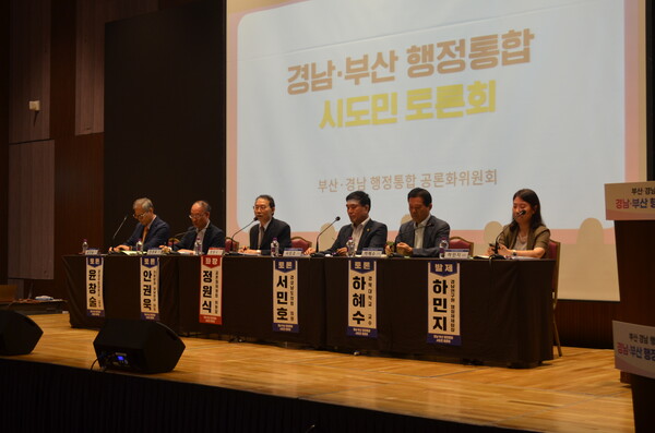 부산-경남 행정통합 공론화위원회가 '경남·부산 행정통합 시도민 토론회'를 마무리했다. 29일 창원컨벤션센터에서 경남 중부권 토론회가 창원·함안·창녕·의령지역 도민과 전문가 등 150여 명이 참석한 가운데 열렸다. 토론회는 올 7월부터 부산 원도심을 시작으로 경남에서는 양산(동부권), 진주(서부권), 통영(남부권) 등에서 진행됐다. 이날은 경남·부산 8개 권역별 토론회 중 마지막 순서였다.