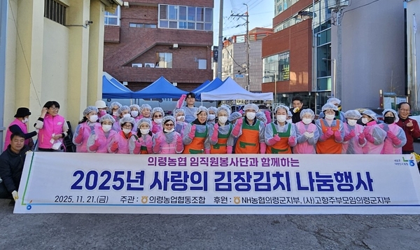 의령농협(조합장 이용택)이 21일 어려운 이웃을 돕기 위한 김장김치 나눔행사를 진행했다. 행사는 임직원들이 자체적으로 마련한 봉사기금으로 진행됐다. 이날 의령농협 임직원봉사단은 정성껏 담근 김장김치 750포기를 경로당, 복지시설, 취약계층 가정 등에 전달했다. /유은상 기자