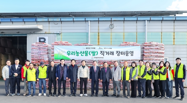 함안군 가야읍 주민자치회(회장 김점근)가 24일 자매결연 지역인 제주시 노형동 주민자치위와 함께 산인면 광일미곡산업에서 함안 농산물 홍보·판매 직거래장을 운영했다. 이날 직거래를 통해 함안에서 생산된 아라홍련 햅쌀 1263포(14t가량)가 제주행 선박을 통해 노형동으로 운송됐다. /유은상 기자